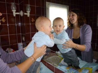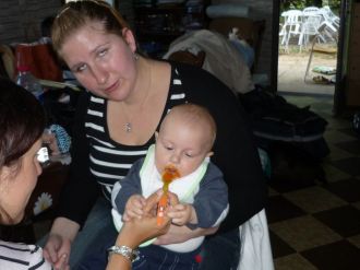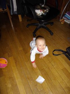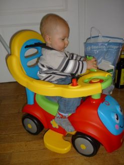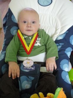 Joyeuses pâquesMessage déposé le 08.04.2012 à 11:33 - Commentaires (1) Lucas 13 moisMessage déposé le 17.03.2012 à 08:00 - Commentaires (2) Voilà Lucas a un an passé Il a ouvert ses cadeaux !! Message déposé le 03.03.2012 à 10:02 - Commentaires (0)Lucas est un coquin, très malin !! Il est très dynamique : il escalade ce qu'il peut, retourne la maison... il est facile à vivre : on peut le "trimballer" avec nous n'importe où: ça se passe toujours bien du moment qu'il a à manger !! depuis, fin janvier, il a fait 3 otites : les premières molaires et canines sont entrain de sortir.. Un enorme merci Ce matin j'ai reçu un colis : un peu surprise, je ne connais pas l'expéditrice et je n'ai rien commandé... Message déposé le 03.03.2012 à 10:00 - Commentaires (0)c'est un cadeau pour les 1 an de Lucas de la part d'une lectrice de mes blogs !! je suis très touchée : une super tenue pour cet été avec un joli écureuil en peluche !! c'est vraiment beaucoup : Lucas a essayé la luge ! Message déposé le 21.02.2012 à 11:41 - Commentaires (0) 1 anMessage déposé le 21.02.2012 à 11:27 - Commentaires (0) Départ en vacancesMessage déposé le 21.02.2012 à 11:21 - Commentaires (0) Je joue avec mamanMessage déposé le 21.02.2012 à 11:15 - Commentaires (1) Jeu de la ressemblance Voilà, tout le monde dit que lucas ressemble au papa... ce qui est vrai.. mais y'a un peu de moi quand meme !! je rigole ! Message déposé le 03.12.2011 à 11:39 - Commentaires (1)sinon, lucas évolue toujours aussi bien : il aime les plats non mixés (avec des morceaux), il fait au revoir de la main.... les vêtements 12 mois sont rangés et on sort le 18 mois.... ![]() Le trotteurMessage déposé le 23.11.2011 à 09:52 - Commentaires (0) Le 4 pattesMessage déposé le 23.11.2011 à 09:46 - Commentaires (0) Lucas 9 mois Le petit bonhomme grandit vite !! Message déposé le 23.11.2011 à 09:43 - Commentaires (0)Il a eu la varicelle y'a 1 mois avec beaucoup de boutons sur le visage. Il rampait beaucoup, puis vers 8 mois et 1 semaine, il a commencé le 4 pattes et 15 jours plus tard arrive a se mettre debout avec appui... il aime découvrir la maison : la gamelle du chat, grimper sous la chaise haute, défaire les bassines de linge, jouer avec tout ce qui passe sauf ses jouets.... coté santé : 75,5cm et 9,2 kg....je l'habiile en 1 ans depuis presque 2 mois 1/2 / 3 mois et je commence le 18 mois.... De nouveau en mode rugby pour la demi finaleMessage déposé le 15.10.2011 à 09:57 - Commentaires (0) Lucas presque 8 mois Coucou tous ! Message déposé le 11.10.2011 à 12:23 - Commentaires (0)Lucas évolue et change de jour en jour.... Il adore manger des boudoirs et du pain..... Il aime se balader dans son trotteur..... on le laisse par phase de 10 minutes... Il commence à faire quelques pas quand on le tient par les mains.... Le 4 pattes c'est toujours à reculons mais il rampe. bref, c'est un coquin...... Allez les bleus !! En mode supporteur de rugby !! Message déposé le 24.09.2011 à 10:07 - Commentaires (0)je suis presque prêt pour la mélée : je tiens à 4 pattes et j'y arrive en marche arrière..... mais pas en avant... Lucas a 7 mois ! Il grandit vite !! Message déposé le 17.09.2011 à 12:56 - Commentaires (1)74 cm et 8,100kg !! je commence à l'habiller avec du 1 an ! coté nourriture : on commence la viande et les boudoirs !! il adore ça !! et monsieur ne veut plus de biberons en journée et le soir, parfois avec difficulté... il commence à boire à la tasse !! sinon, il découvert la marche dans le trotteur. Il tiens assis assez longtemps surtout quand il est assis devant la cage des cochons d'inde chez mamie. il cherche à"ramper" mais il a pas encore tout compris... enfin il tourne sur lui même (en latéral et du ventre au dos)... Il est toujours aussi souriant et va bien avec tout le monde. Sinon, coté famille, Lucas a perdu sa 1ère arrière grand mère (mémé chanut)..... Il a encore été gâté entre les cadeaux qu'on reçoit et les petits jouets achetés aux brocantes..... Les vacances!!Message déposé le 13.09.2011 à 20:43 - Commentaires (0) 5 mois et une semaine Je tiens assis depuis une semaine avec une petite aide comme l'attache de mon transat, ou celui de la chaise haute... Message déposé le 24.07.2011 à 17:19 - Commentaires (1)du coup, maman m'a mis sur mon porteur que mon parrain m'a offert !! j'étais tout fier et tout content !! Lucas 5 mois ! Hier, on a visité une cave de champagne. Message déposé le 16.07.2011 à 14:29 - Commentaires (0)Lucas grandit !! il s'amuse à se retourner du dos à sur le ventre et vice versa... c'est son nouveau jeu ! il fait aussi des vocalises!! il aime de plus en plus jouer avec papa et maman..... et les câlins aussi !! maintenant, il redort bien la nuit. ça faisait 2 semaines qu'il ne les faisaient plus... depuis qu'il était en journée complète chez la nounou ! Lucas a vu ses premiers feux d'artifice !! oh que c'est joli !! J'ai gouté les carottes !! Message déposé le 26.06.2011 à 16:50 - Commentaires (4) Lucas en mode maman!!Message déposé le 20.06.2011 à 10:02 - Commentaires (0) Lucas 4 mois !! Lucas a 4 mois ! Message déposé le 16.06.2011 à 13:50 - Commentaires (0)toujours 2 dents ! une rhinopharyngite.... le pauvre doudou !! bientot la nounou et la reprise du boulot de maman !! en attendant, maman a ramené une médaille des championnats de lorraine de tir (elle a fait son record) et une qualification aux championnats de france ! Le doudou de lucas voyage pendant sa siesteMessage déposé le 07.06.2011 à 11:00 - Commentaires (1) Photo du jourMessage déposé le 04.06.2011 à 11:41 - Commentaires (1) 1ere fête des mères Hier, ma première fête des mères, j'ai eu une rose ! Message déposé le 30.05.2011 à 10:36 - Commentaires (1)et je me suis fais plaisir à la coupe Meuse 50m à commercy : on a gagné à la carabine et j'ai fait un 100/100... pas mal pour quelqu'un qui depuis un an a juste tou