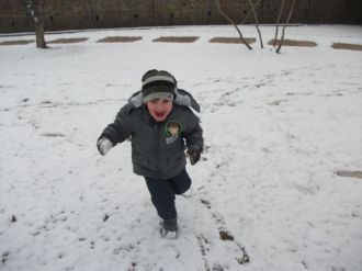 ce matin depuis son réveil Michael voulait aller toucher la neige , c'est donc ce que nous avons fait vers 9h30 en allant au jeu, en plus nous étions les premiers à fouler le parc , trop bien , toute la neige nous appartenait !!!!