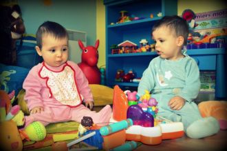 Bon c'est pas sans bagarres, parfois je le gêne, il me pousse, je pleure, il me fait un bisou et ça repart!  Message déposé le 07.07.2011 à 23:34 - Commentaires (2)