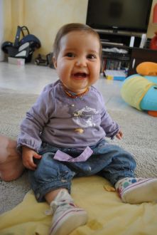 Ma Zoé !!!Message déposé le 18.10.2011 à 15:54 - Commentaires (3) 1an !!!!!!!!!!!!! Oh la vilaine maman qui ne tient pas bien le blog de Zoé !!!! Message déposé le 18.10.2011 à 15:50 - Commentaires (0)Bon alors il y a exactement 1mois, ma Zoé soufflait sa premiere bougie !!! 1an de bonheur, 1an d amour, de rire et de bonne humeur. Zoé est parfaite !! Un vrai petit clown :) Elle cherche a marcher depuis qqs temps mais fait l andouille des qu on lui propose de marcher seule. Elle se lache sans pb, tient debout, fait 2 ou 3 pas mais s arrete ensuite. On a bien le temps de la voir marcher... et puis elle est tte petite aussi alors ca fait drole :) Coté evolution, elle dessine, cuisine parfaitement bien avec sa dinette, s interesse aux puzzles, aux livres, a tout en fait ! Elle cherche a monter sur le canapé, et essaye de plus en plus de jouer avec Camille. C est vraiment bien de les voir ttes les deux a jouer aux cubes, ou a la cabane a balle ! Coté alimentation Zoé ne mange pas... elle dévore !!! Bien que le pediatre la trouve trop mince (???), je peux vous garantir qu elle mange tres tres bien ! Elle dort bien, a un caractere bien trempé !! Bref c est ma Zoé quoi <3 <3 allez petite photo de ses 1ans ! 11 mois Et voilà le dernier mois avant les 1ans... Message déposé le 18.08.2011 à 13:27 - Commentaires (2)Ca passe vite , quoi je repete?? lol 11 mois, une petite Zoé parfaite !! Elle se marre tout le temps, mange bien, dort bien, parle avec des maman et papa Le 4pattes acquis c est parti pour se lever en s appuyant sur les meubles ou la table... bon le pb c est que la table qui gagne quelquefois et ma Zoé se retrouve avec une belle bosse sur le front :( Enfin tout ça pour dire que tout va bien, et que le mois prochain on a rendez vos pour souffler ma 1ere bougie !!! 10 mois !!! Bon d accord ça fait deja qqs jours que j ai 10mois mais en ce moment papa est en vacance et on arrete pas de bouger !!! Message déposé le 28.07.2011 à 09:14 - Commentaires (1)Je vais a la piscine, je vais dans les jeux des grands a kizoo aventure c est genial ! Je ne vais plus chez delphine ma nourrice parce qu elle est en vacance, mais je suis presssée de la voir pour lui montrer comme j ai grandit ! 10 mois... 4dents, bientot 6 ! je les fait par deux ça va plus vite hihi Je m assois tte seule depuis qq temps deja, je suis rigolotte, je rigole tt le temps. Je mange tres bien :) Maman a commencé les morceaux et ceux que je prefere c est de la banane et de la peche bien mure mhummmm Je mets les morceaux directement dans ma bouche et là je me regale ! Pour le 4pattes, j ai fait mes premiers pas hier soir. Maman etait folle de joie !! A moi la liberté ! Enfin c est encore un peu juste, mais je suis sure que le perimetre va vite s agrandir ! Je joue de plus en plus avec Camille et je la devore des yeux! J essaye de lever mon popotin pour me mettre debout mais cela reste encore un peu difficile ! Haaaaaaaa c est vraiment bien de grandir !!! ![]() Et de trois !! Trois quoi? Message déposé le 06.07.2011 à 10:53 - Commentaires (1)bah de dents :)= Deux en bas, une en haut et la quatrieme suit de pres !!! Je grandis je grandis :) Au revoir mamie Mon arriere grand mere nous a quitté le 21 juin. Message déposé le 06.07.2011 à 10:48 - Commentaires (0)Ca été tres difficile pour ma maman car elle l aimait beaucoup... Elle a passé beaucoup de temps avec elle et esperait que nous aurions nous aussi la chance d en profiter. Mais le cancer a repris ses droits et elle est partie. La ceremonie était le lendemain de mon bapteme, elle a eu une jolie ceremonie et a eu beaucoup de monde aupres d elle tout au long de cette journée On t aime fort Mamie Mon bapteme Et voilà les pieces montées !!! Message déposé le 06.07.2011 à 10:39 - Commentaires (1)Un petit escargot et un arrosoir, et je peux vous dire qu on s est regalé !! j ai meme gouté les choux moi ! Mon BaptemeMessage déposé le 06.07.2011 à 10:35 - Commentaires (1) Mon Bapteme Le 26 juin dernier nous avons feter mon bapteme, nous avons eu un dimanche tres ensoleillé ! Message déposé le 06.07.2011 à 10:33 - Commentaires (1)La ceremonie s est bien passée, je n ai rien dit quand on m a baptisé, et le pretre etait content de moi ! J ai ete tres mignonne pendant l eglise et on a fait de jolies photos pour tous les paparazzis qui etaient là specialement pour moi ! Ce we là il y avait aussi Eric et Marie et ses petits princes :) ils ont fait le deplacement de Nantes pour passer le we avec nous. On etait content de les voir. Allez je vous montre les photos ! ![]() J ai 9mois ! Hier j ai eu 9mois... Message déposé le 18.06.2011 à 20:35 - Commentaires (2)Incroyable comme le temps passe vite ! Je suis une vraie chipie un peu commère hihi Je regarde partout, au moindre bruit, je me tords dans tous les sens pour voir ce qu il se passe.. Je bavarde et des bababababa dadadadada et claquement de langues, et chuuuuuuuuuuuu, pffffffffffffff et j en passe ! En tout cas j amuse la galerie ! Je copie tout ce que fait papa et maman et tout le monde rigole, au revoir de la main, je danse sur la musique, et je commence à vouloir me déplacer mais j ai pas trouver la marche avant... Je tiens qqs temps debout en me tenant... C est quand meme drolement bien de grandir :) Camille a 3ans !!! Aujourd hui, c est l anniversaire de ma soeur. Message déposé le 10.06.2011 à 21:30 - Commentaires (2)Elle a 3ans!!! 3ans que mon papa et ma maman sont fiers d elle, 3ans qu ils aiment ma soeur plus que tout au monde et qu ils croient très fort en ces capacités... Notre championne devient une belle grande fille ! Joyeux anniversaire ma soeur chérie !!! ![]() Mon bapteme A la fin du mois le 26.06, je me fais baptiser ! Message déposé le 06.06.2011 à 13:37 - Commentaires (2)Papa et maman sont donc en train de tt preparer pour que tout soit le mieux possible. Les dragées et contenants sont enfin terminés, la piece montée est commandée, reste qqs detai