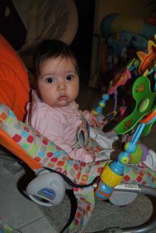 Des que maman me met dans le trensat, je cherche mon équilibre et tente de rester assise.