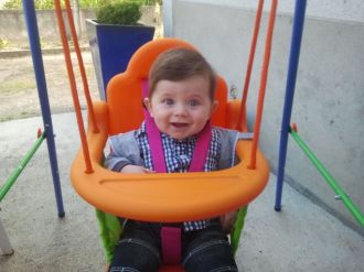 Aujourd'hui tu as 8 mois et le temps à grande vitesse!!! Tu texprime par des syllabe "baba dada papa" et tu pousses des cris papa à même peur que tu abimes tes cordes vocales....