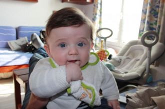 À 3mois tu suces ton pouce gauche, tu as toujours tes yeux bleus espérons que tu les gardent, tu fais tes nuits (21:30/7:30) tu reconnais les chansons que nous te faisons écouter.